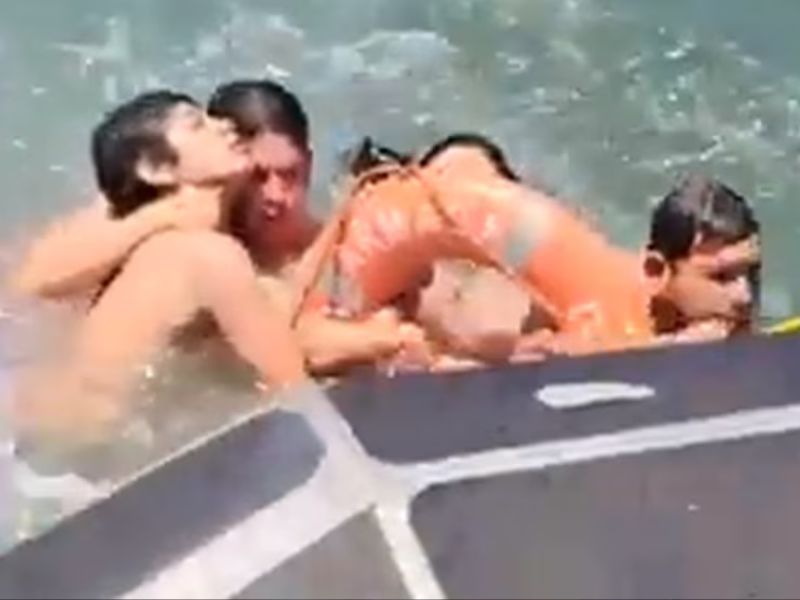 En las últimas horas, se conoció un video que muestra el rescate: un hombre aparece nadando con los afectados y se acerca a un bote de Prefectura, que los asistió y ayudó a subir a bordo.