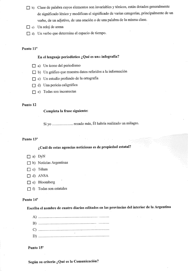 Preguntas como “¿Qué es un adverbio?” o “¿Qué es –en el argot periodístico- un título informativo?”, conviven con ejercicios de “comprensión de textos”, y numerosas opciones multiple choice.
