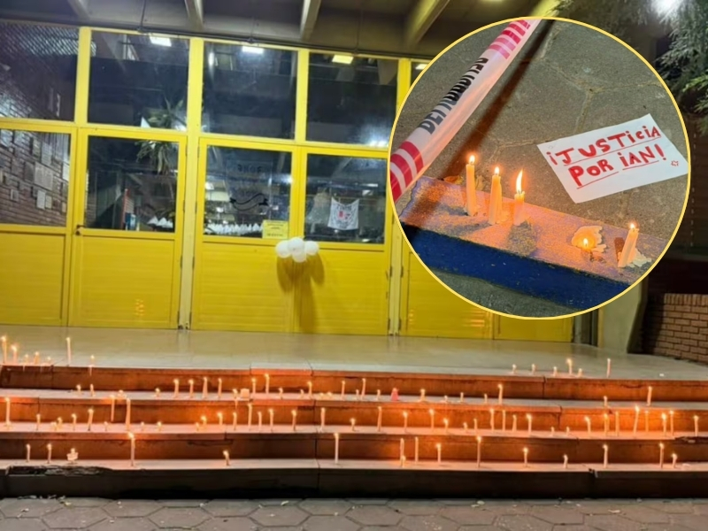 Por la noche, la comunidad educativa y vecinos se congregaron en el establecimiento para rendir un sentido homenaje al joven fallecido. Con velas encendidas, globos blancos y pancartas, los presentes expresaron su dolor y solidaridad hacia la familia de la víctima en un acto silencioso que reflejó el impacto del trágico suceso.