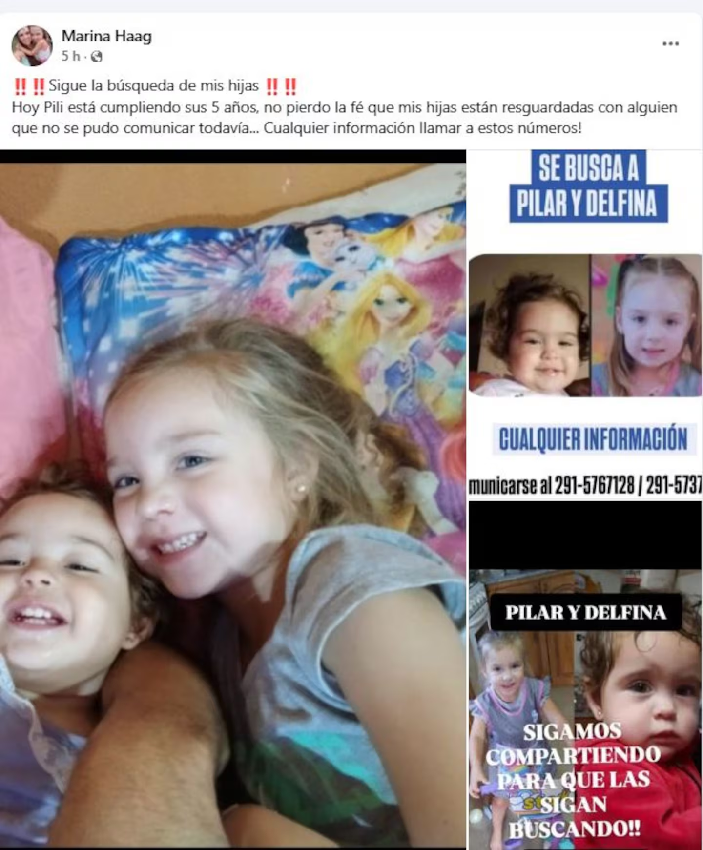 Su mamá Marina Haag compartió en su cuenta de Facebook un mensaje conmovedor: "Sigue la búsqueda de mis hijas".