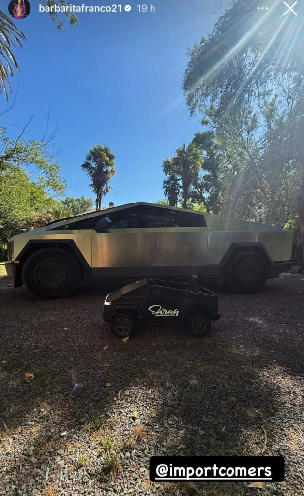 Además del lujoso vehículo para Barby, su hija Sarah también recibió un presente especial: una mini Cybertruck a batería diseñada para niños. De esta manera, madre e hija comparten el mismo modelo de auto, cada una en su versión.