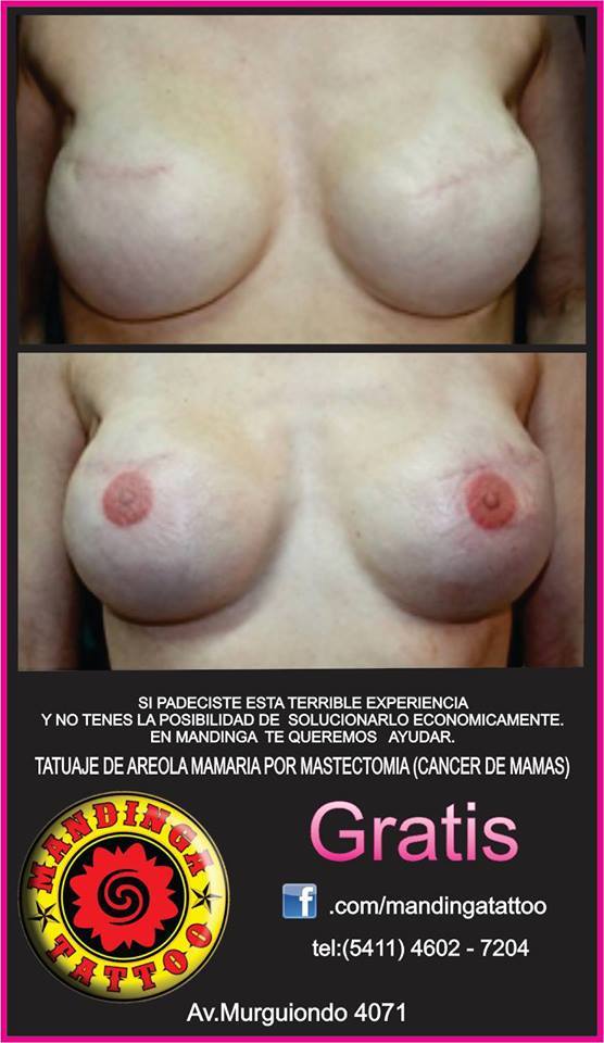 Dicho y hecho. Desde septiembre de 2015, en Mandinga Tattoo, Diego homenajea de manera gratuita a todas las mujeres que vencieron el cáncer de mama y les reconstruye la areola mamaria con un tatuaje que imita su forma y pigmentación.