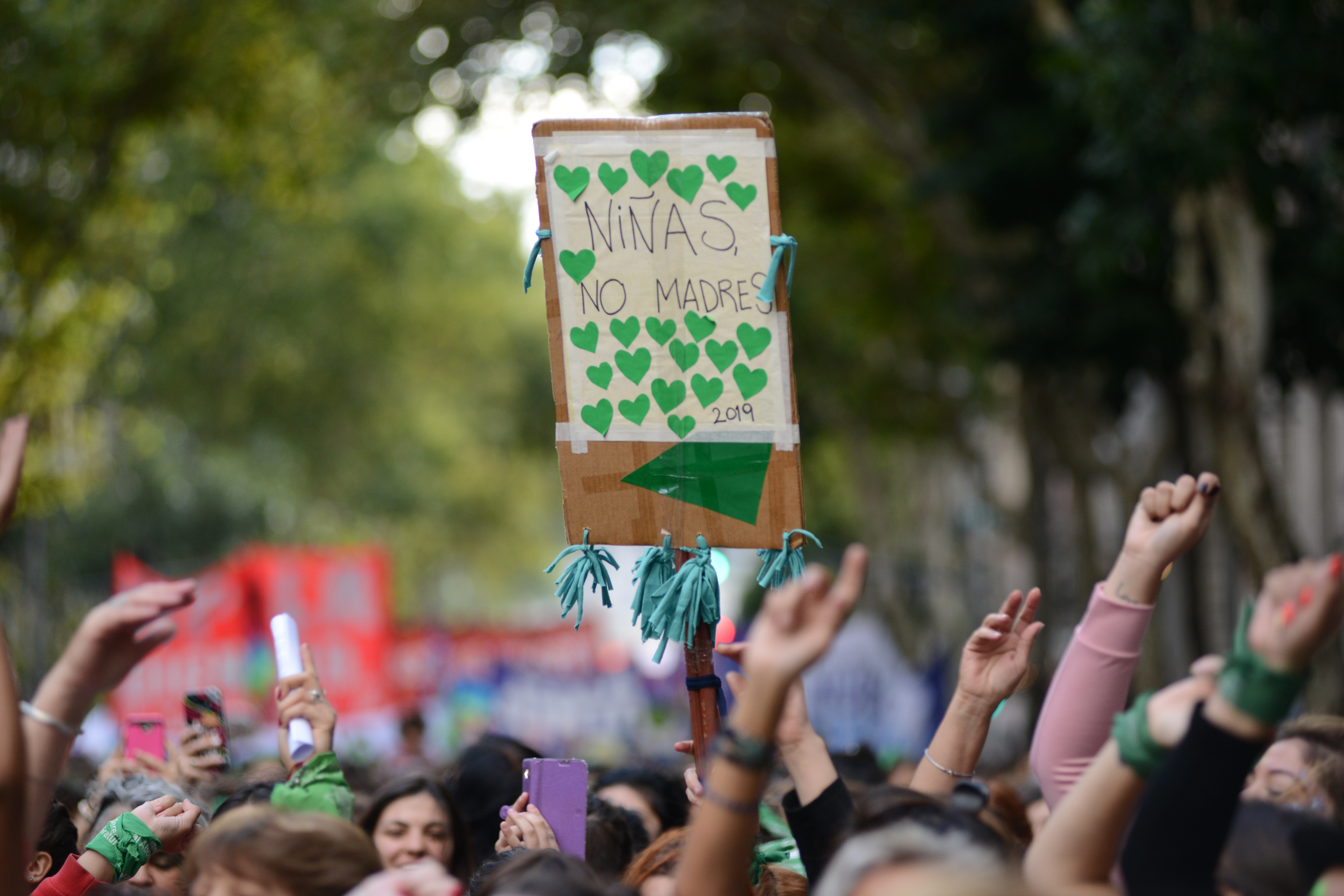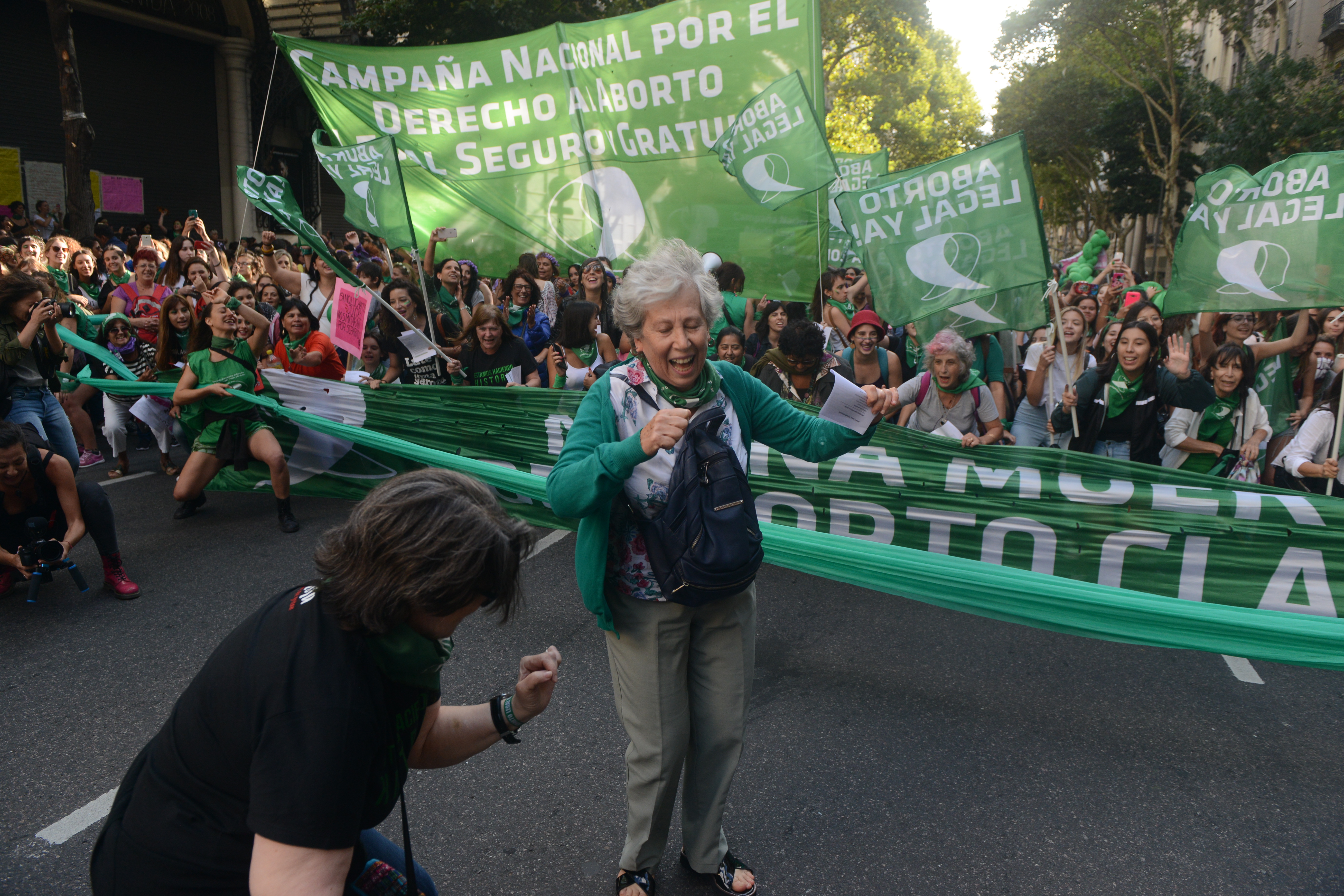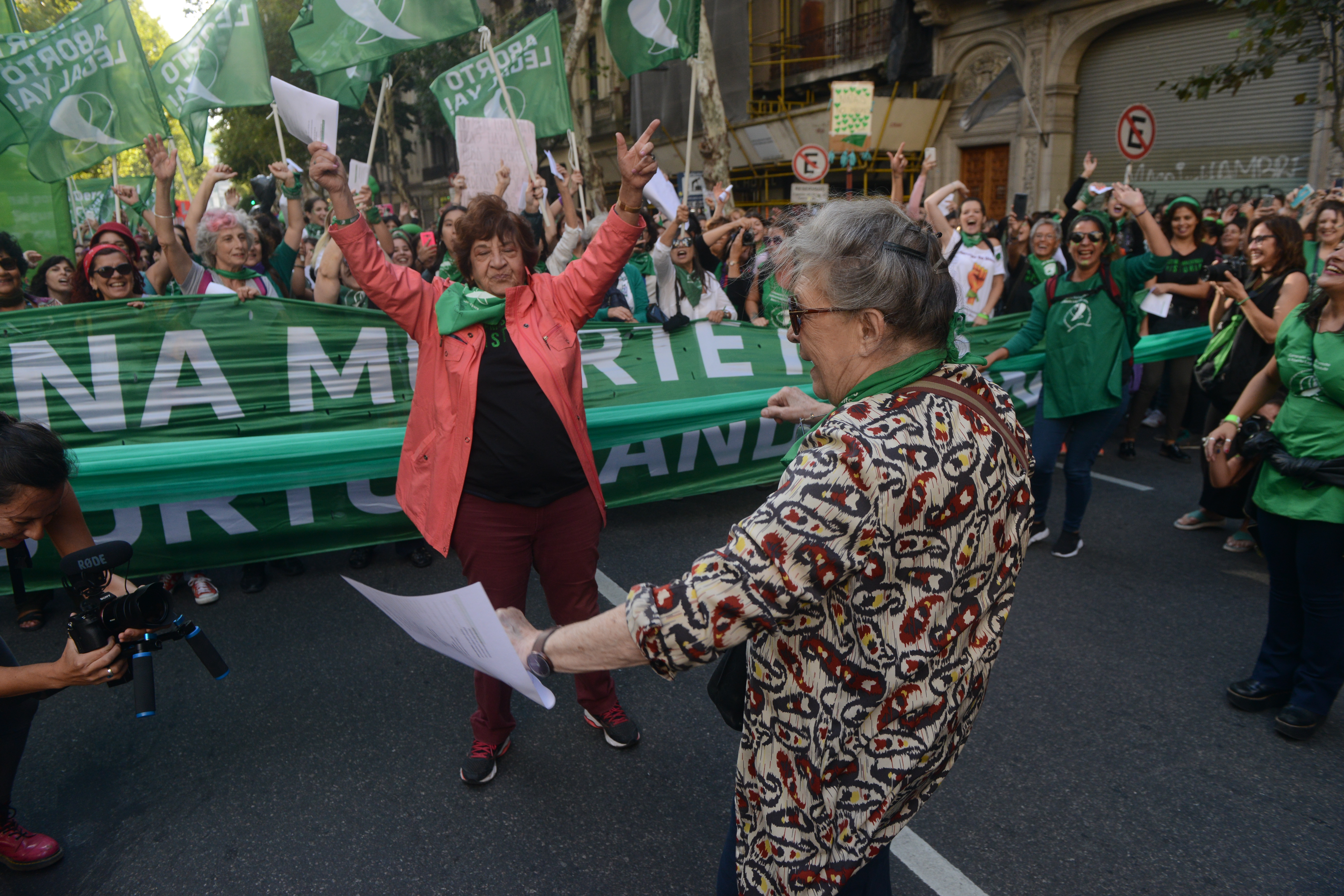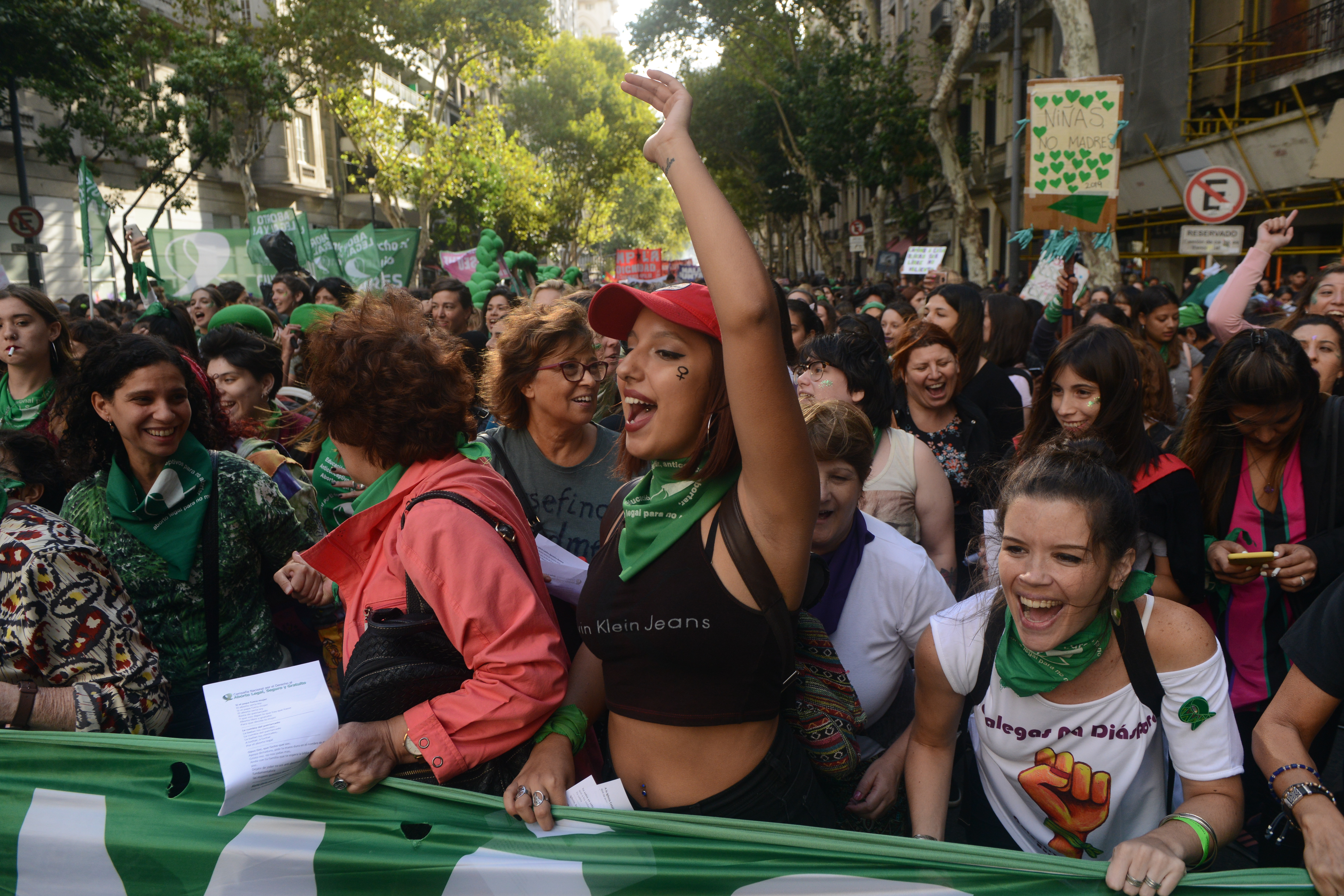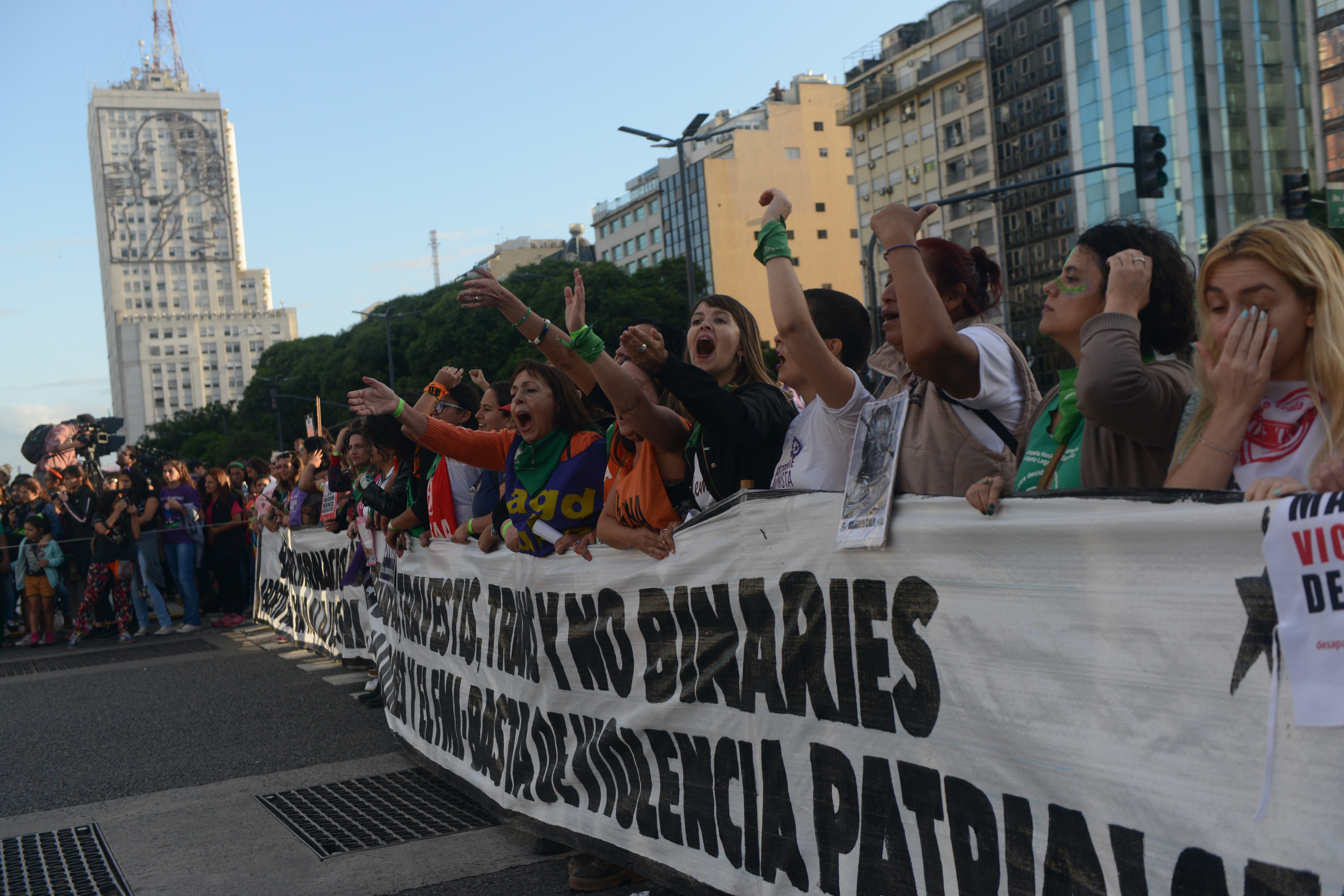 Muchísimas chicas jóvenes, mayoría de pañuelos verdes, símbolo del reclamo pendiente por la legalización del aborto, madres con hijas chicas, actrices agrupadas, trabajadoras sindicalizadas y en lucha, amigas, compañeras de colegio. Todas juntas.