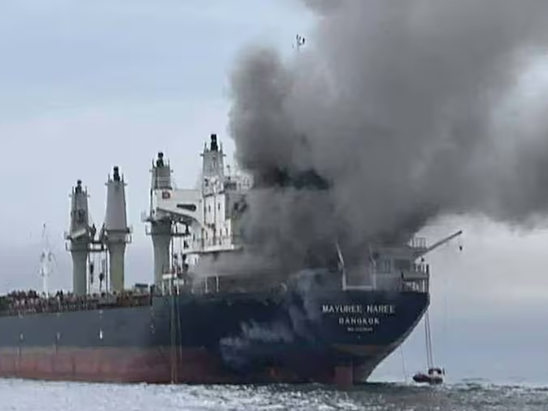 El carguero Mayuree Naree, de bandera tailandesa, fue alcanzado frente a Omán. Veinte tripulantes fueron rescatados, pero tres permanecen desaparecidos. El portacontenedores japonés One Majesty sufrió daños menores cerca de Ras al-Jaima, Emiratos Árabes Unidos. La tripulación está a salvo.