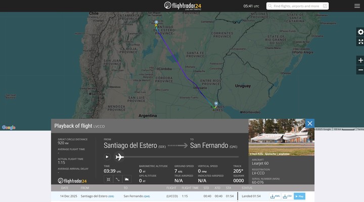 El vuelo privado partió del Aeropuerto de San Fernando a las 19.01 y aterrizó en Santiago del Estero a las 20.28. Tras la entrega de premios, Tapia emprendió el regreso esa misma noche: despegó a las 00.40 y llegó a San Fernando a la 1.54. Según fuentes aeronáuticas, el costo del traslado ida y vuelta rondó los 12.100 dólares.