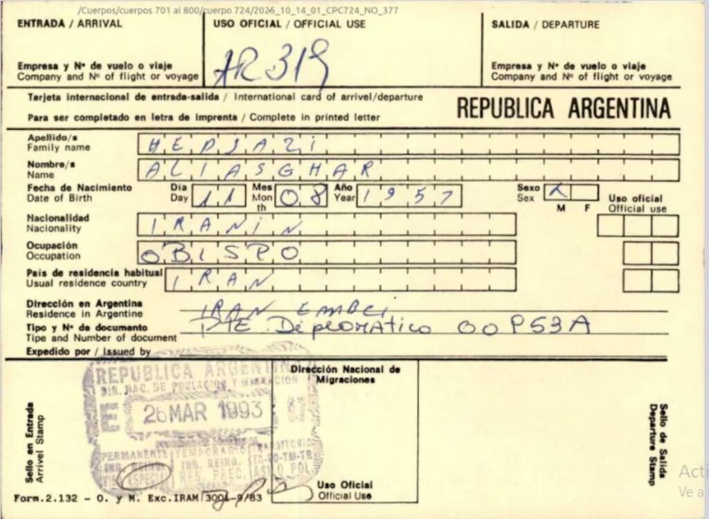 Ravani sostuvo además que Hejazi mantenía vínculos directos con Mojtaba Jamenei, hijo del líder religioso y señalado como su sucesor dentro del régimen. Según su relato, el funcionario viajó a la Argentina en 1993 para supervisar personalmente la preparación del atentado.