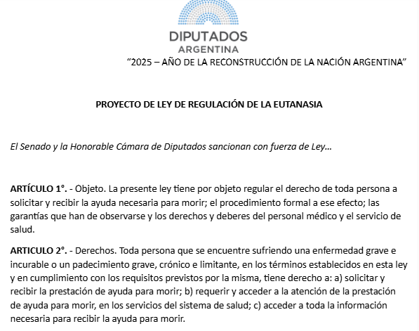 Actualmente, en Argentina existe la llamada ley de “muerte digna”, que autoriza a rechazar tratamientos que solo prolonguen el sufrimiento sin expectativas de recuperación. Sin embargo, esa normativa no contempla la eutanasia activa ni la asistencia médica para morir, un vacío legal que el nuevo proyecto intenta cubrir.