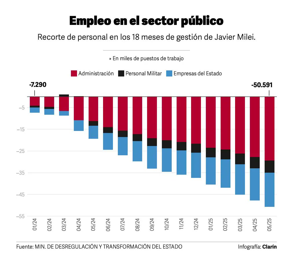 La política de recorte se enmarca en la estrategia oficial de achicar la estructura estatal y reducir el gasto público, bajo el argumento de eficientizar la gestión y limitar el déficit. Sin embargo, el impacto social y económico es evidente: miles de familias quedaron sin empleo y sectores estratégicos del Estado vieron debilitada su capacidad operativa.