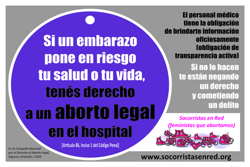 Presentes en gran parte del país, las socorristas acercan a las mujeres interesadas en interrumpir su embarazo a la información acerca de cómo llevar adelante un aborto, incluso cuando este no se encuadre dentro de los casos aceptados por la ley -actualmente el procedimiento solo está admitido en casos de violación, peligro para la salud de la madre o malformaciones del feto incompatibles con la vida.