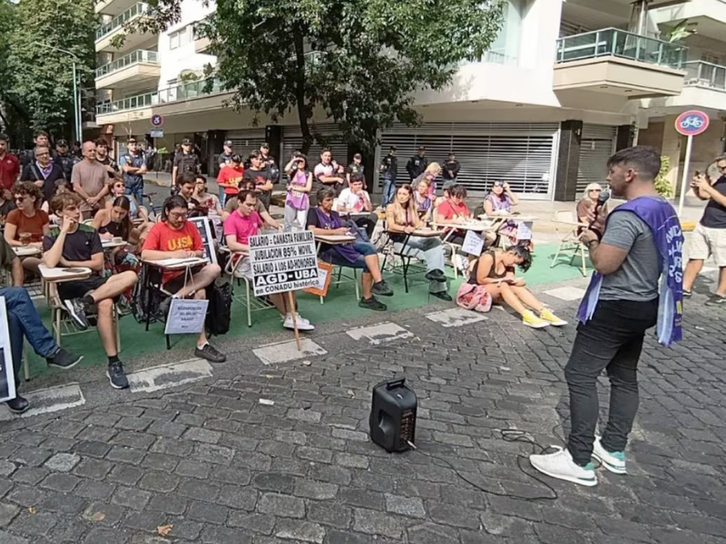 La tensión escaló en el barrio porteño de Caballito, donde un grupo de docentes universitarios y militantes de agrupaciones de izquierda instalaron pupitres y pizarras en la vereda para dictar una "clase pública". El objetivo del reclamo fue directo: la puerta del edificio donde reside el jefe de Gabinete, Manuel Adorni.