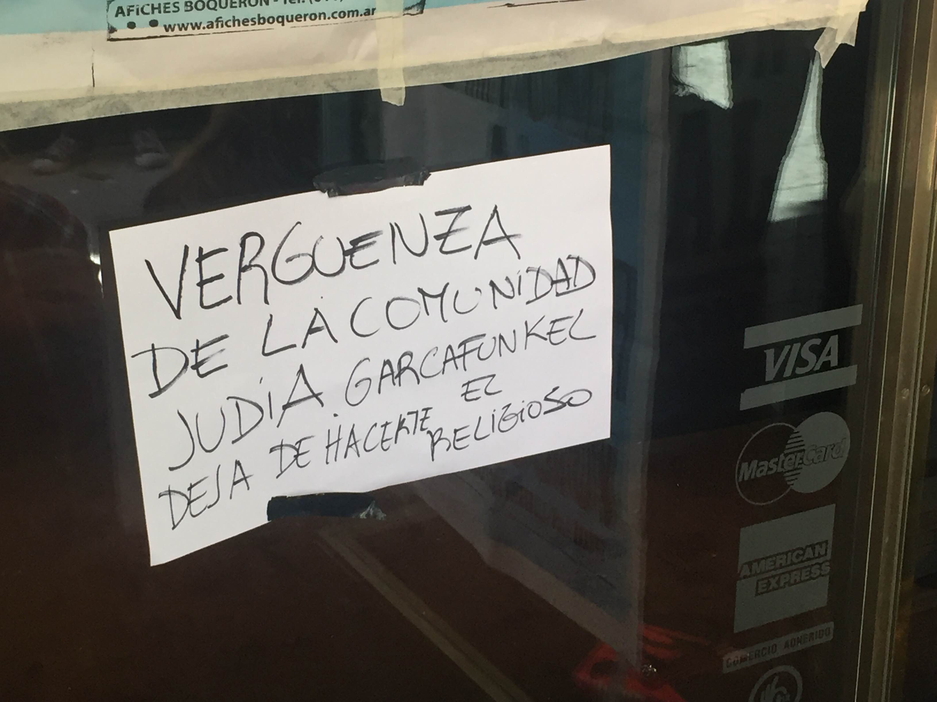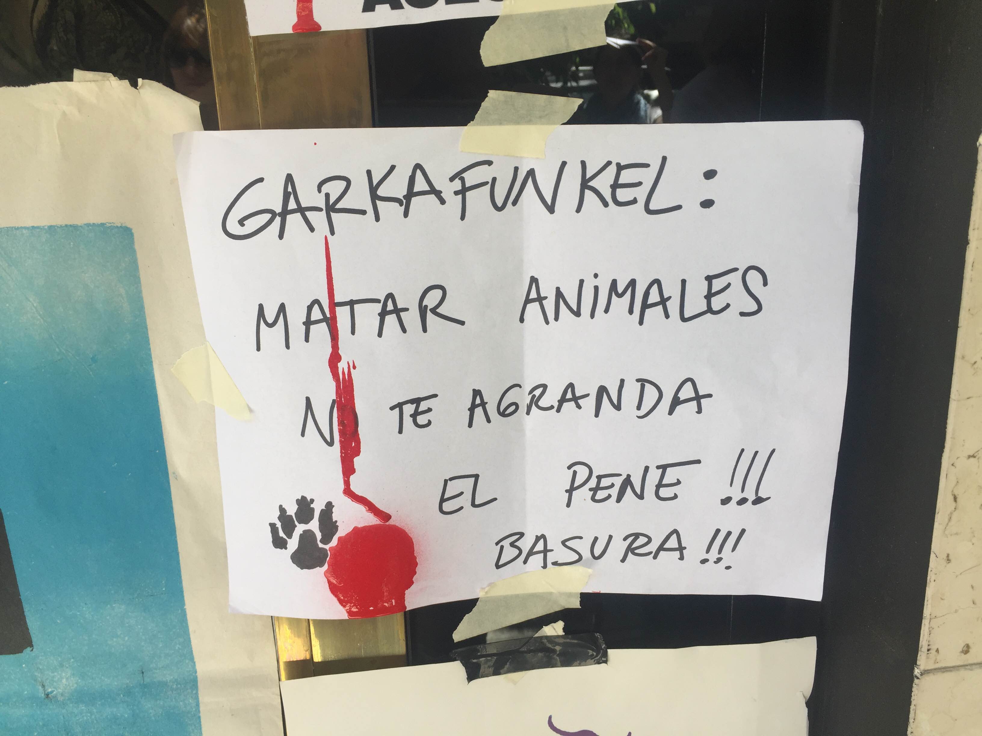 Algunos de los mensajes que taparon la lingerie de Vannucci fueron: “Garfunkel, matar animales no te agranda el pene, basura!!!”, “linda herencia le dejás a tus hijos, asesino”, “Sos la vergüenza de la comunidad judía” y “Asesino GarcaFunkel”, entre otros.
