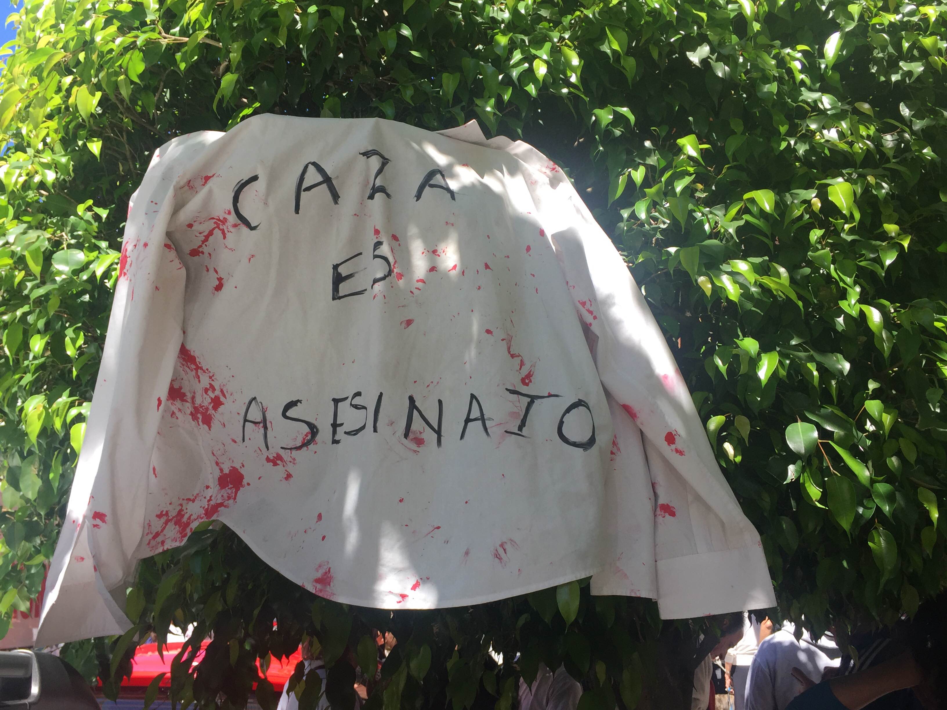 Un centenar de personas se organizó espontáneamente para repudiar la cacería de animales que tanto parece enorgullecer a la pareja más cuestionada del país. Fue el sábado al mediodía en el local de lencería de la ex tenista en Recoleta. Planean hacer lo mismo en los locales de la firma familiar del empresario autoexiliado en Miami.