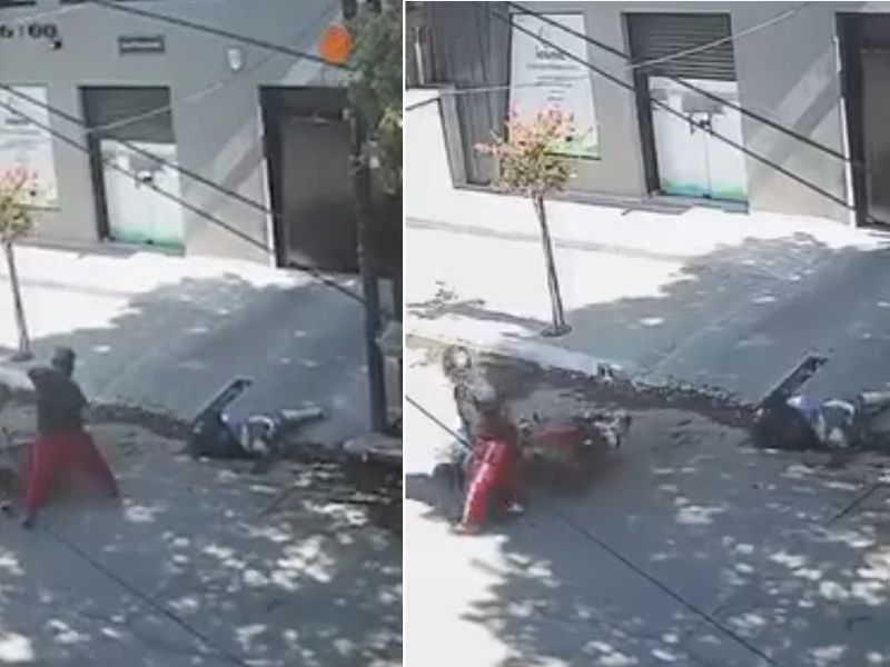 Un delincuente que circulaba en moto sorprendió a la mujer para robarle el bolso. En la grabación de una cámara de seguridad se observa cómo el agresor, aún con el vehículo en movimiento, forcejea con la víctima mientras intenta arrebatarle sus pertenencias. En cuestión de segundos, el ladrón la arrastra por el asfalto, lo que provocó que la mujer cayera y sufriera un fuerte golpe en la cabeza, dejándola inconsciente en la calle.