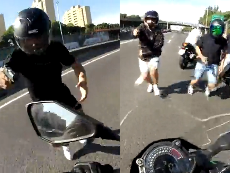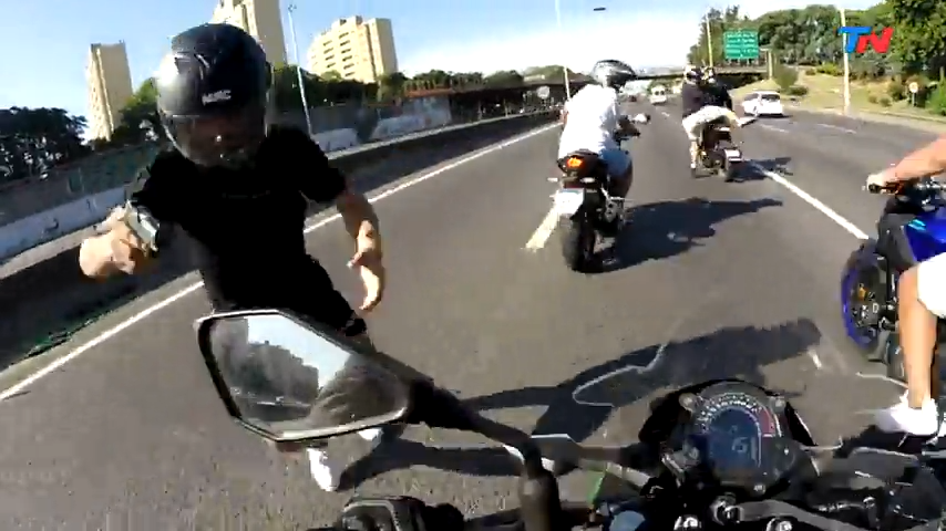El hecho ocurrió el domingo por la tarde, a unos dos kilómetros del peaje del Mercado Central y quedó registrado por una cámara que la víctima llevaba en el casco.
