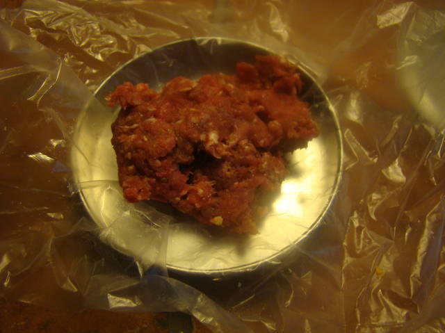 5.- Y ahora ¡a armar! Colocá un film o nylon sobre la parte de abajo del hamburguesero, agrega sobre ella una pelota de carne y nuevamente film o nylon por arriba.
