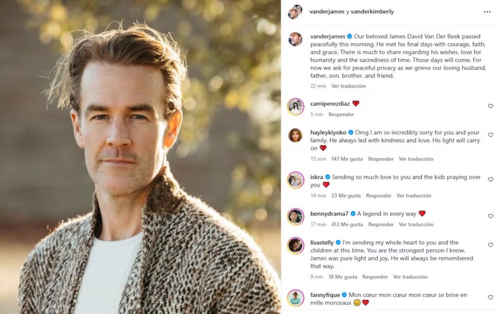 La noticia fue confirmada por su familia a través de un comunicado difundido en redes sociales. “Nuestro querido James David Van Der Beek murió pacíficamente esta mañana. Atravesó sus últimos días con coraje, fe y gracia. Hay mucho que compartir con respecto a sus deseos y amor por la humanidad. Esos días vendrán”, expresaron.