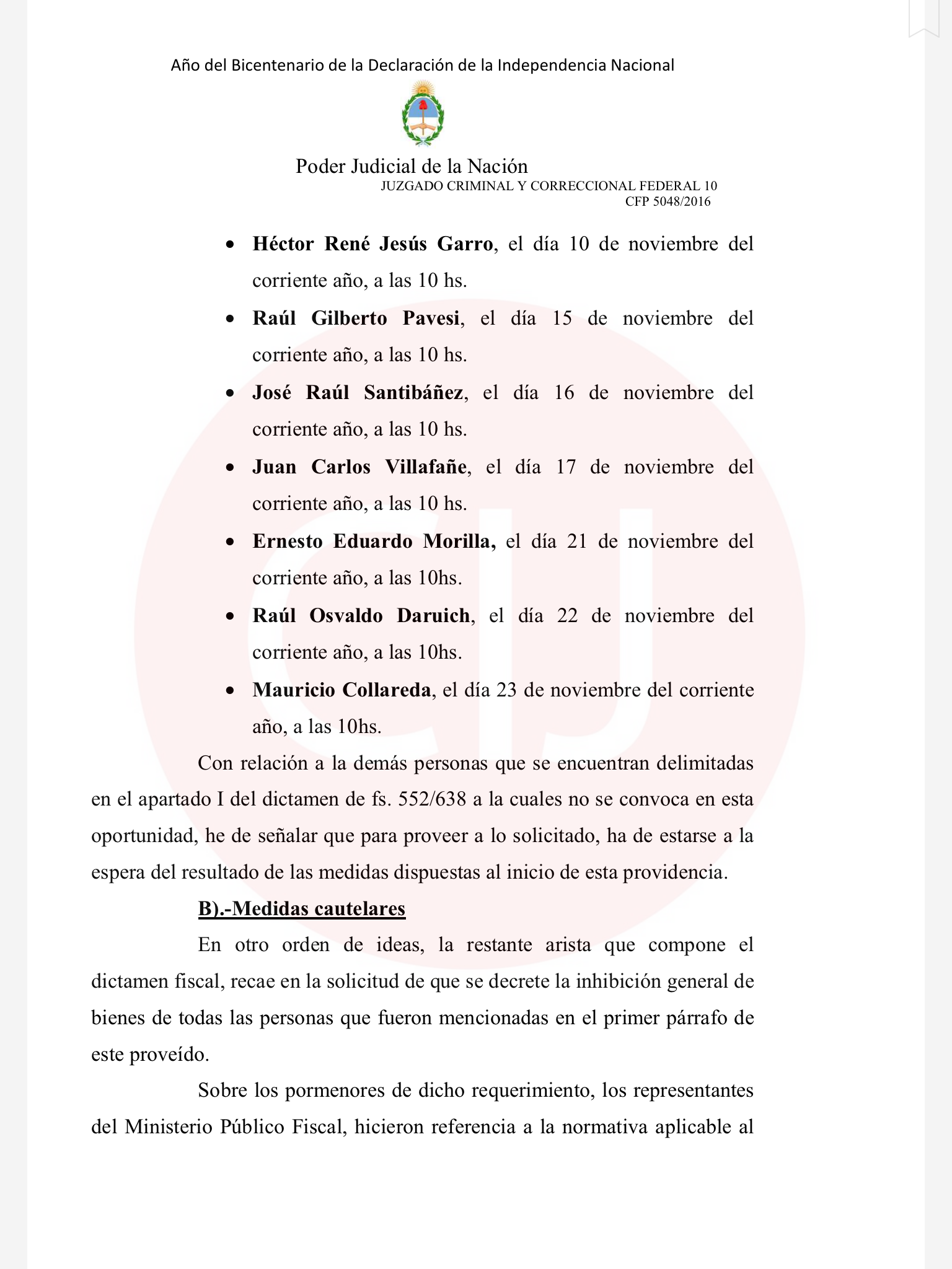 En este caso, Ercolini pidió que se informe a “a todos los Registros de la Propiedad Inmueble de la República Argentina, a la Dirección Nacional de los Registros de la Propiedad Automotor y Créditos Prendarios, Registro Nacional de Buques y de Aeronaves, al Banco Central de la República Argentina, al Studd Book de la Asociación Civil Jockey Club, a la Comisión Nacional de Valores, al Mercado de Valores, a la Caja de Valores S.A., a la Inspección General de Justicia, y a los restantes organismos equivalentes a este último de todas las provincias”.
