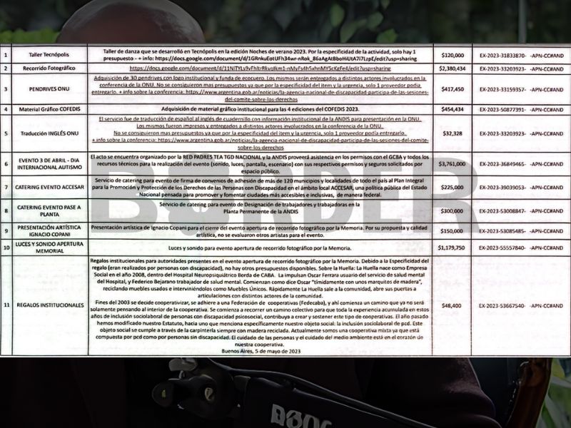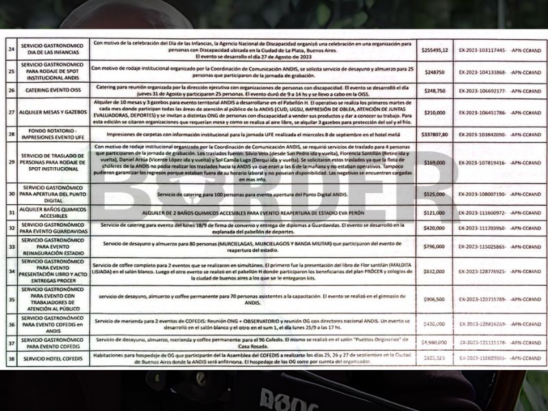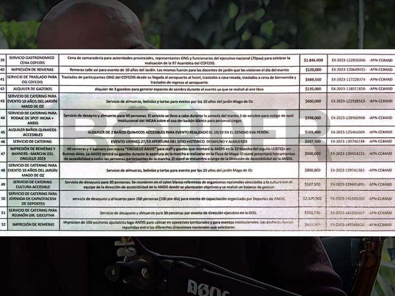 El director del ANDIS resaltó que solo durante el año pasado también registró gastos superfluos por 35 millones de pesos, entre los que se destaca una contratación al cantante y compositor Ignacio Copani, por 150 mil pesos, y múltiples servicios de desayunos, almuerzos y cenas.