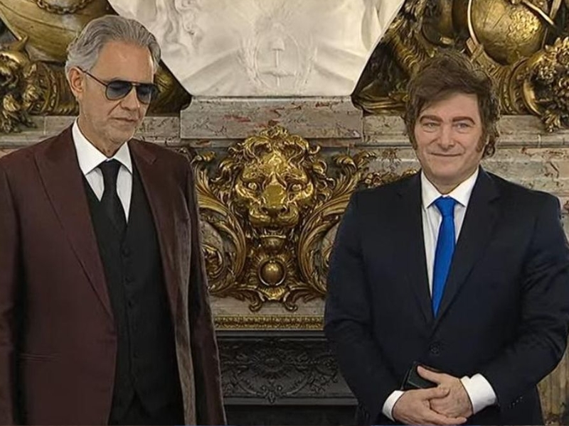 El presidente Javier Milei recibió en la Casa Rosada al renombrado tenor italiano Andrea Bocelli, en el marco de su gira por Buenos Aires, que incluyó un concierto en el Teatro Colón. Según la locutora del acto, la distinción “simboliza el reconocimiento de la Argentina a quienes por sus méritos se hacen merecedores de una de las más altas distinciones que confiere el país”.
