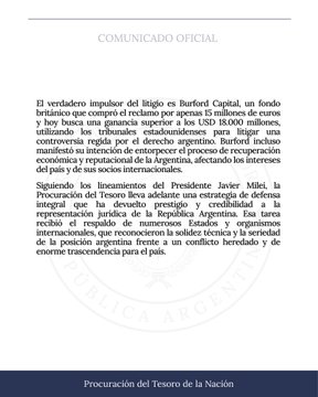 El comunicado criticó específicamente a Burford Capital, el fondo británico que compró el reclamo de Petersen por 15 millones de euros y que ahora busca una ganancia "superior al 37.000%".