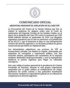 La Procuración del Tesoro manifestó su confianza en la chance de revertir la sentencia por US$16.000 millones sobre la Argentina por la estatización de YPF, luego de una importante audiencia que se llevó a cabo hoy en Nueva York.